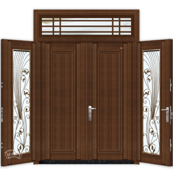 外玄關門:立體弧型+雙層玻璃鍛造花系列門