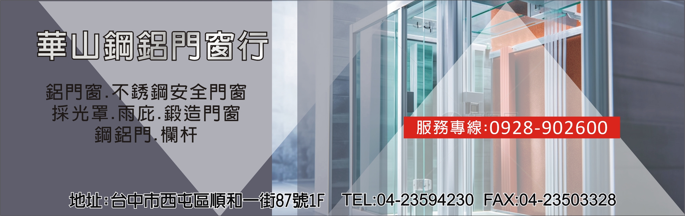 鋁門、鋁窗、不銹鋼安全門窗、採光罩、雨庇、鍛造門窗、鋼鋁門、欄杆、門、窗、華山、不銹鋼安全門窗批發、台中不鏽鋼安全門窗批發、台中採光罩、台中欄杆、台中鋁門、台中鋁門窗、台中鋼鋁門、台中雨庇、台中欄杆、台中門窗工程