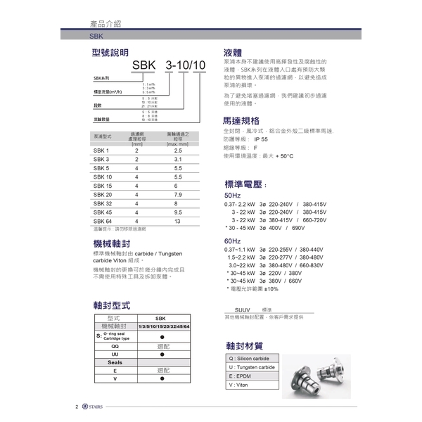 斯特爾SBK,CBK,SPC系列浸水式多段不銹鋼離心泵浦產品說明