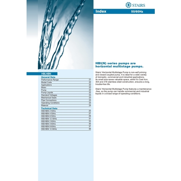 斯特爾CB,CBI,HBI,HBN系列臥式多段離心泵浦產品說明