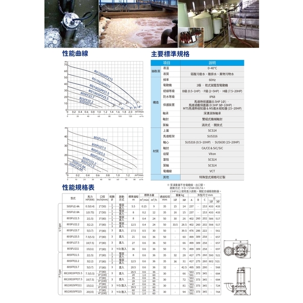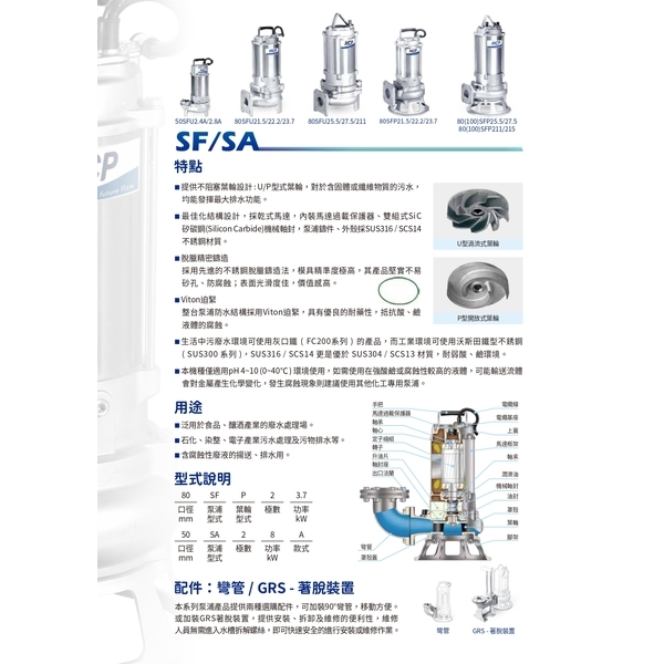 奇侑實業有限公司 - 河見-不銹鋼污水泵浦 型號:SF/SA系列