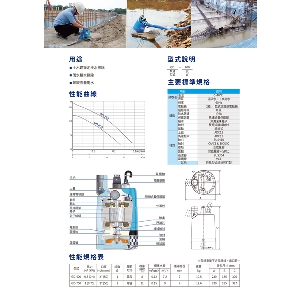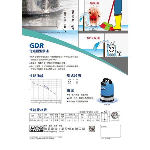 奇侑實業有限公司 - 河見-低水位泵浦 型號:GD/GDR系列
