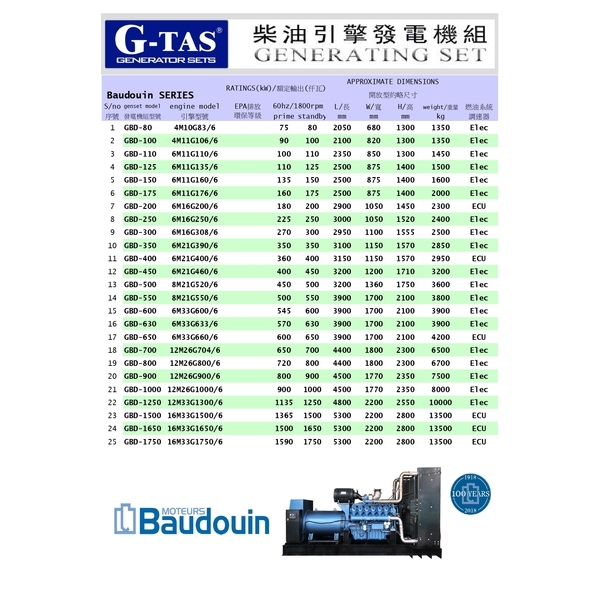 G-TAS燿昌牌發電機 燿昌Baudouin