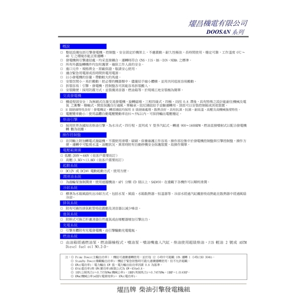 奇侑實業有限公司 - G-TAS燿昌牌發電機 型號:燿昌DOOSAN