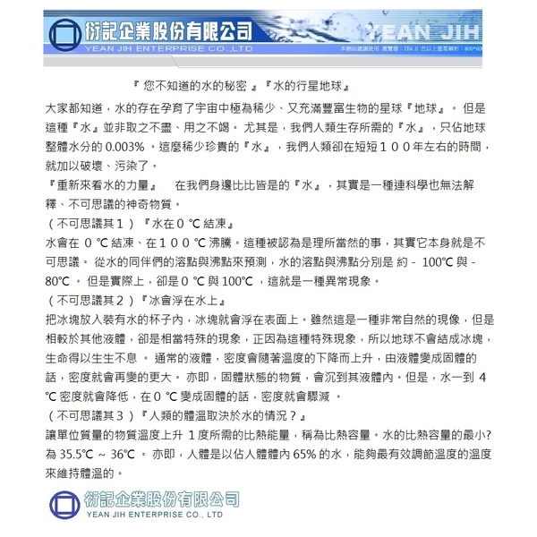 您不知道的水的秘密產品介紹 - 衍記企業股份有限公司