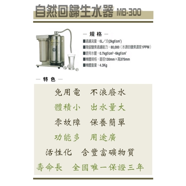 自然回歸生水器產品介紹 - 衍記企業股份有限公司