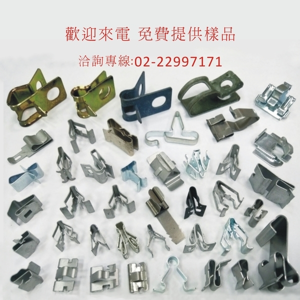 燈管夾、手壓管夾、單耳管夾、水管夾、不銹鋼管夾、浴簾鉤、太陽能配線固定夾、金屬軟管固定座、汽車扣具、車燈夾片、機車零件、懸吊扣具、電纜線固定具、輕鋼架支架固定夾、金屬鑰匙圈、油壓機械五金、建築五金、LED招牌廣告燈管夾、T4、T5、T6、T8、T9、T10、PL燈管夾、LED燈條固定座、燈具彈片、束帶、吊具、鉤環、衣夾、裙鉤、緊固件、端子、夾片、華司、束環、衛浴五金、交通器材五金、建材五金、鋼筋彎曲加工、窗簾五金、窗簾軌道、窗簾伸縮軌、園藝工具五金、浪板固定片、欄杆固定片、鋁門窗五金、廚具五金、綠建材配件、採光罩固定片、磁磚定位彈片、玻璃五金、木門把手五金、燈具零配件、玩具、文具、沖壓模具、彈片、軟燈管條專用固定支架,歡迎來電洽詢02-22997171~6
