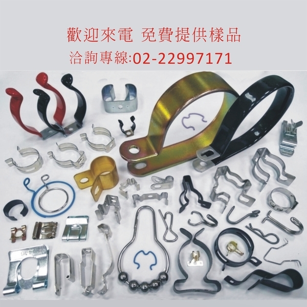 燈管夾、手壓管夾、單耳管夾、水管夾、不銹鋼管夾、浴簾鉤、太陽能配線固定夾、金屬軟管固定座、汽車扣具、車燈夾片、機車零件、懸吊扣具、電纜線固定具、輕鋼架支架固定夾、金屬鑰匙圈、油壓機械五金、建築五金、LED招牌廣告燈管夾、T4、T5、T6、T8、T9、T10、PL燈管夾、LED燈條固定座、燈具彈片、束帶、吊具、鉤環、衣夾、裙鉤、緊固件、端子、夾片、華司、束環、衛浴五金、交通器材五金、建材五金、鋼筋彎曲加工、窗簾五金、窗簾軌道、窗簾伸縮軌、園藝工具五金、浪板固定片、欄杆固定片、鋁門窗五金、廚具五金、綠建材配件、採光罩固定片、磁磚定位彈片、玻璃五金、木門把手五金、燈具零配件、玩具、文具、沖壓模具、彈片、軟燈管條專用固定支架,歡迎來電洽詢02-22997171~6