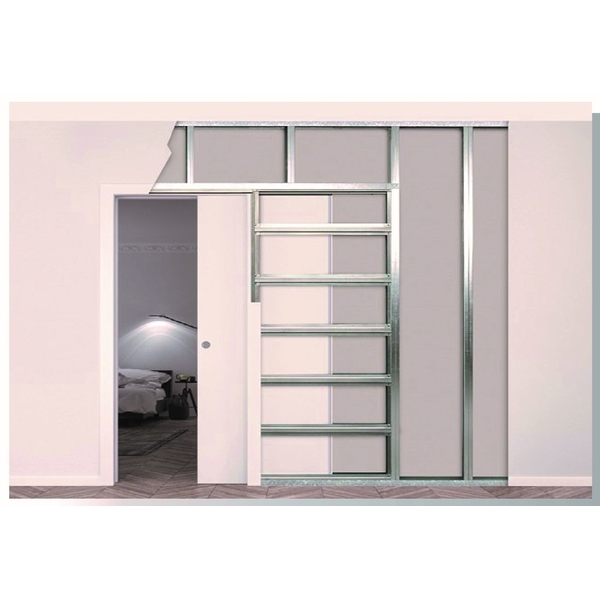 隱藏門套系統在工廠中預製而成,為一完整的系統 ,包括門套軌道及五金配件,安裝快速、性能穩定,軌道由門套支撐不會下垂或鬆動為一優良之創新產品,特殊的門框設計可輕易更換門片。