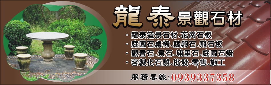 景觀石材、竹山景觀石材、屋瓦工程、屋瓦換新、屋瓦翻修、造景石材、高壓水泥製品、水泥製品批發零售、花崗石板、庭園石桌椅、鵝卵石、飛石板、觀音石、景石、埔里石、庭園石燈、客製化石雕、文化瓦、西班牙瓦、德國瓦、琉璃瓦、屋瓦翻新、排水槽、瓦、日本瓦、水泥瓦、水泥纖維瓦、輕量瓦、斷熱板、銅水槽、銅瓦、柔性瓦、平板瓦、陶土瓦...等。