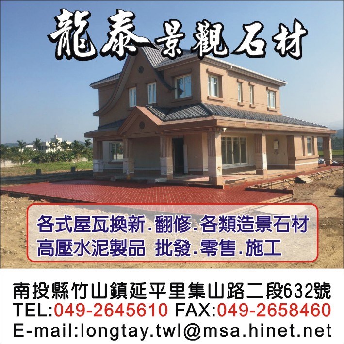 龍泰景觀石材專做各類景觀石材、各式屋瓦換新、築物外觀設計規劃,石材、建材客製化專業施工團隊,責任施工!