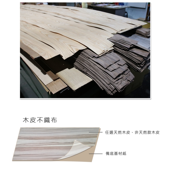 將指定的木皮貼合於專用背紙上,經過熱壓工程將木皮整皮成一張。