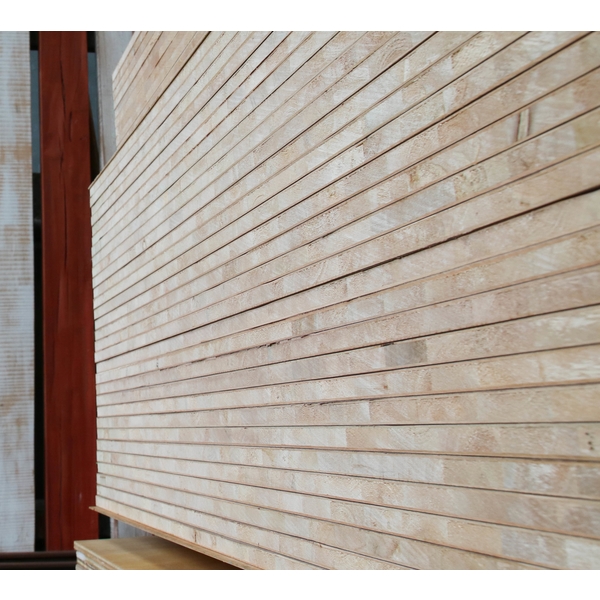 上下夾板中間鋪以長寬不等,但厚度一致的木心條,