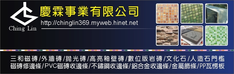 營業項目:磁磚修邊條、鋁合金收邊條、外牆丁掛磚、文化石、金屬飾條、導盲磚、玻璃馬賽克、人造大理石門檻、PVC磁磚修邊條、PP瓦楞板、頂級鋁合金磁磚收邊條、不銹鋼磁磚收邊條、彩紋磁磚修邊條、大理石紋磁磚收邊條、木紋磁磚收邊條、窯燒崗石車道磚國內各大廠牌磁磚買賣、磁磚裝飾條、磁磚修邊條、木紋地磚、花葉石、石灰石、多層岩、水紋岩、地磚、岩面丁掛磚、花崗丁掛磚、馬賽克、收邊條、丁掛磚、慶霖、台中磁磚、台中地磚、裕邦磁磚、馬賽克牆壁、人造大理石門檻拋光磚、車道磚、磁磚、人造石門檻、人造石門檻、三和磁磚、永久磁磚、協裕磁磚、維納思拋光磚、JNJ玻璃馬賽克、層之峰高級彩紋馬賽克、台中三和磁磚、台中人造石門檻、台中磁磚買賣