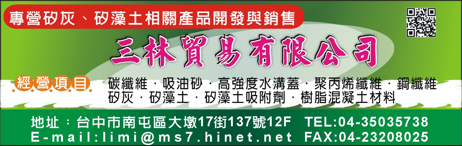 經營項目:矽灰、矽藻土、碳纖維、吸油砂、高強度水溝蓋、聚丙烯纖維、鋼纖維、矽藻土吸附劑、樹脂混凝土材料、原灰矽灰土、緻密矽灰土、微奈米級矽藻土、普通矽藻土、保溫磚、磚、吸附劑...等。
