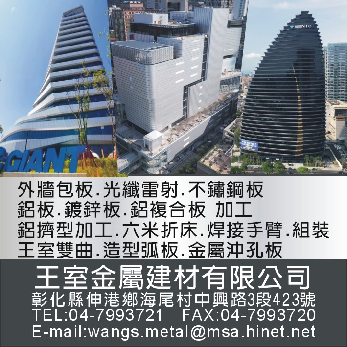 鋁擠型加工、外牆包板、光纖雷射、鋁材、鋁板、不銹鋼板、不銹鋼材、鍍鋅板、鋁複合板加工、六米折床、焊接手臂、組裝、鋁複合板彎摺、鋁複合板焊接手臂、鋁複合板組裝、帷幕牆、金屬、牆板、格柵加工、組立、裁切、鑽孔、雷射、王室、NCT沖床、加工、沖孔、不鏽鋼板、不鏽鋼材、彰化鋁擠型加工、彰化外牆包板、彰化光纖雷射、彰化各式鋁材、彰化不銹鋼材、彰化鍍鋅板材、彰化鋁複合板材、彰化鋁複合板加工、彰化鋁複合板組裝、彰化焊接手臂