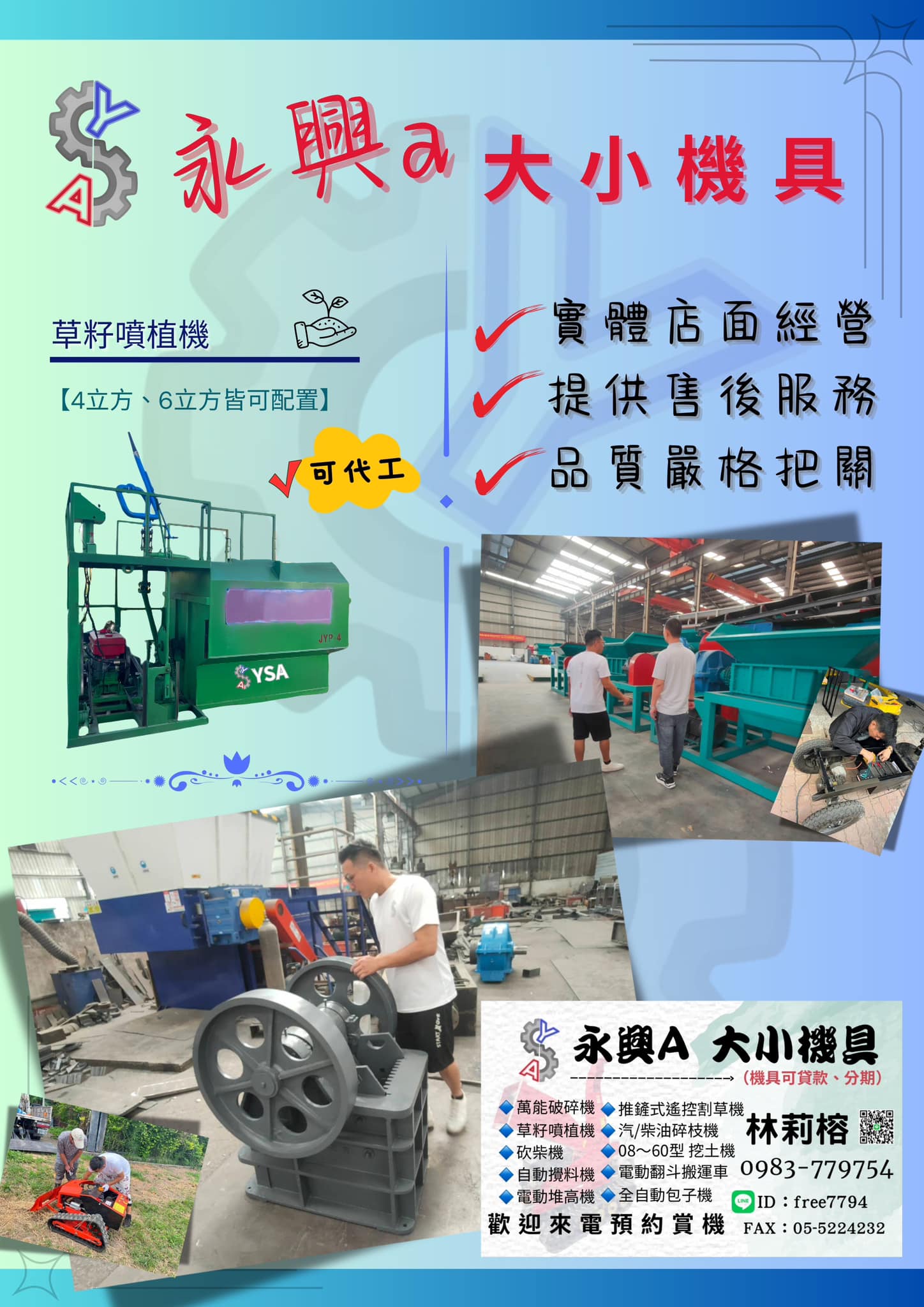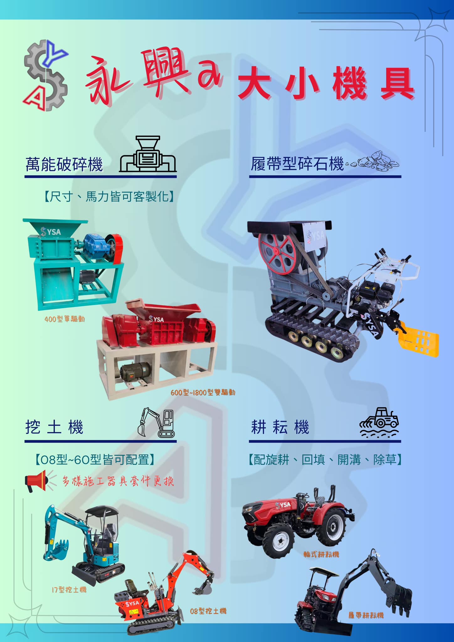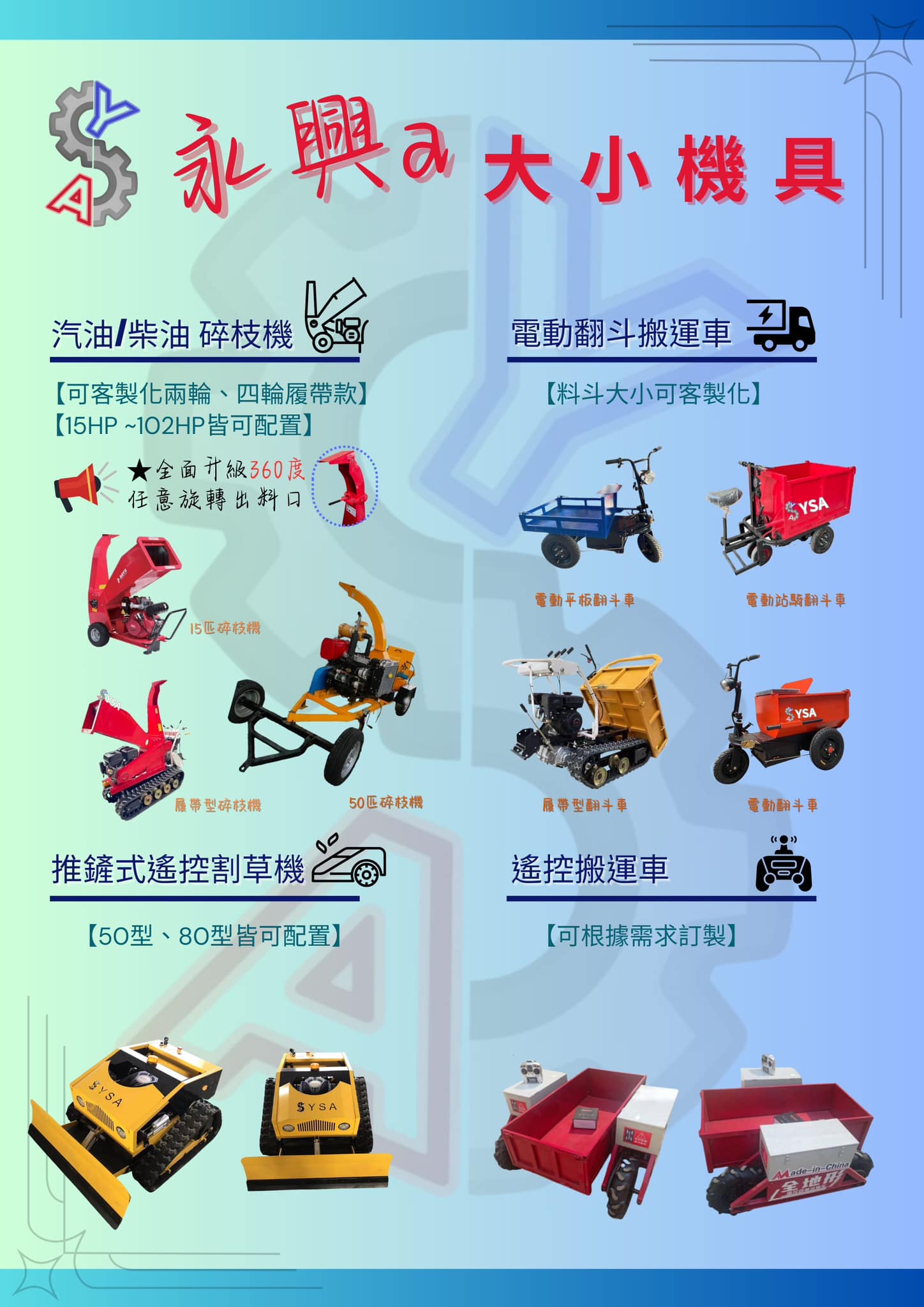 各式大小機具,享有比補助更優惠價格,歡迎預約現場賞機!
