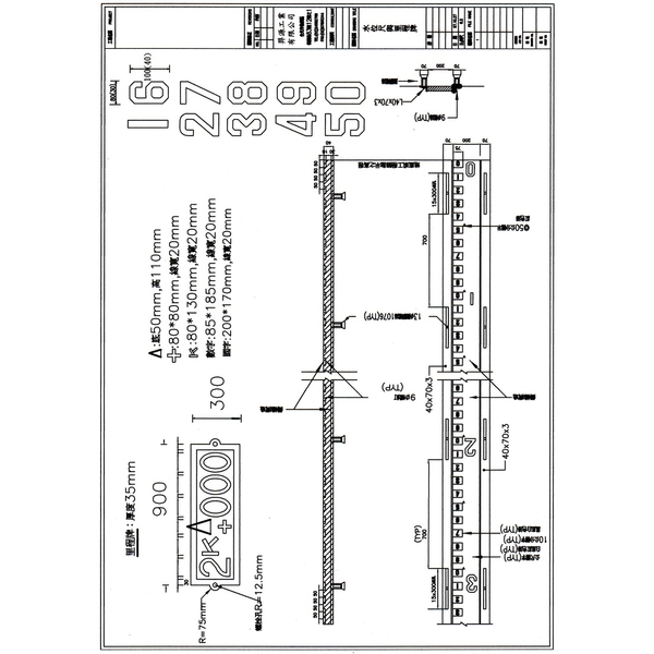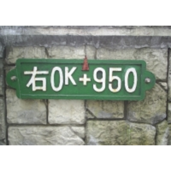 本圖是里程牌,安裝於河道外側,類似道路台九線xxK+xxx之里程數識別,而河道內側則安裝水位尺可以遠距得知目前水位高度的設備,兩者都是鑄鐵材質,外漆紅色或綠底白色等水位高度數字。