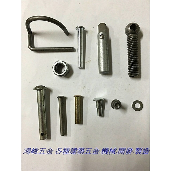 各式:鉚釘、中孔釘、螺絲、多沖程冷鍛、開發製造、鷹架五金配件、台中螺絲、台中鉚釘、台中鷹架、鴻新螺絲