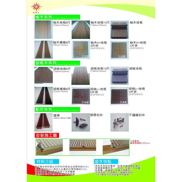 進口銷售優質氧化鎂板(3mm.4mm.6mm)、防火門(43mm/46mm3*7珍珠岩板)、矽酸鈣板、角材、合板、木芯板銷售、塑木地板(中空150mm*25mm)、DIY塑木地板(310mm*310mm*21mm)(胡桃、柚木)