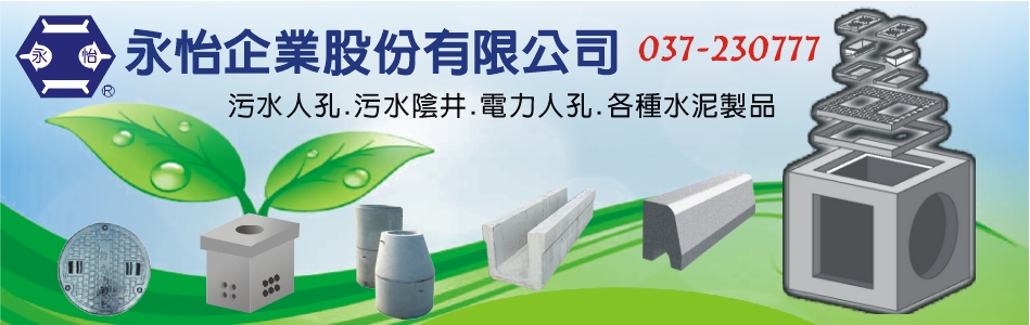 永怡企業專業生產各種:污水人孔、電力、電信人手孔、排水溝、水溝蓋、路緣石、楣樑、陰井、紐澤西護欄、水泥角、圍牆板、高壓路磚、各種鑄鐵蓋、腳踏板、水泥管、方圓化糞池等製品。近年來,致力鑽研發明並申請獲得國家專利之多種水泥製品。