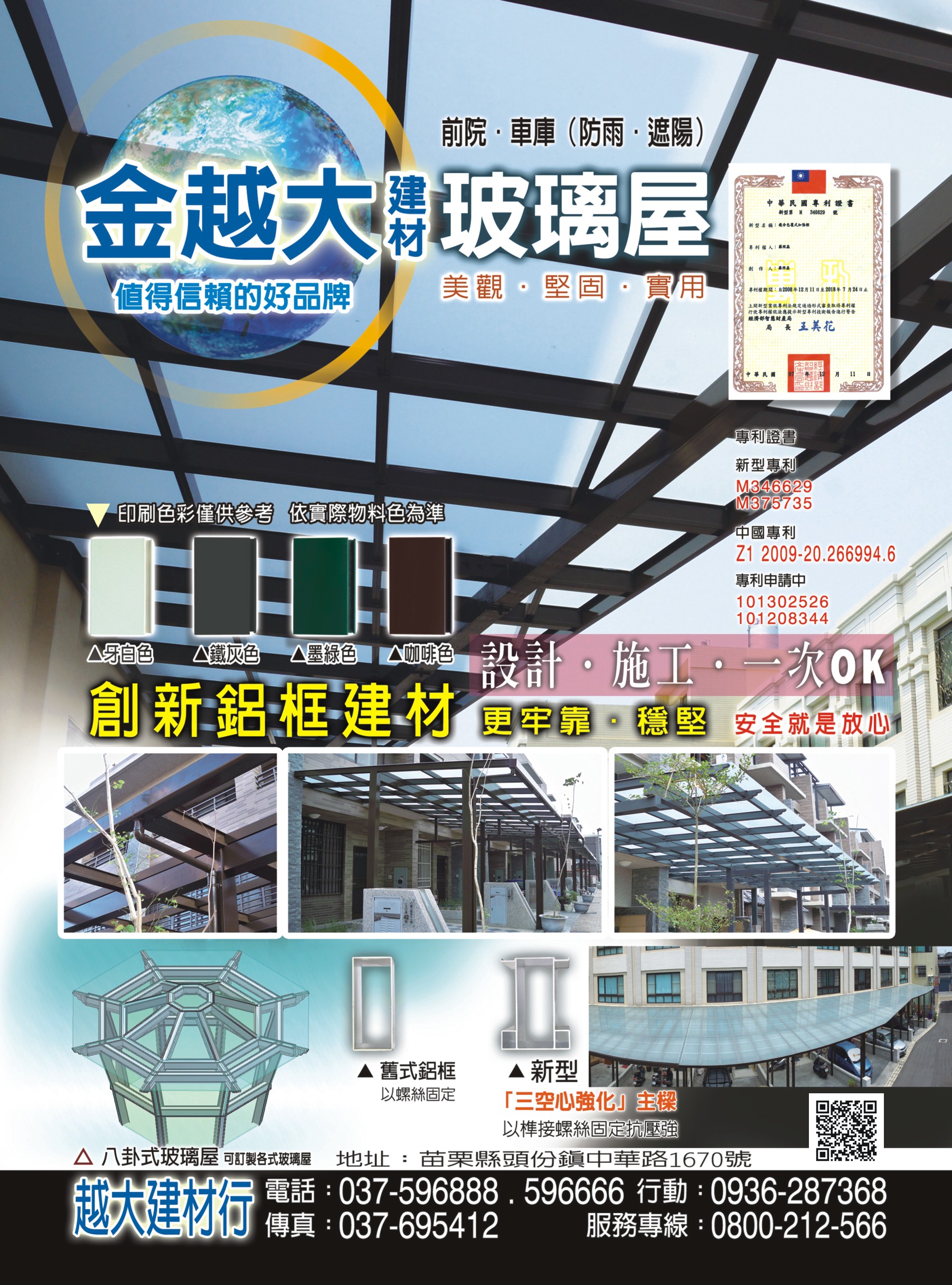 玻璃屋、玻璃採光罩、鋁框建材、鋁料買賣、台灣參普玻璃屋、金屬門窗、鍛造門窗、防盜窗、防盜門、鋁門窗、隔音窗、隔音門、格子窗、凸窗、氣密窗、百葉窗、推射窗、景觀窗、玻璃採光罩、鍛造採光罩、三合一通風門、紗門、大同隔音窗原廠授權、金加州代理、淋浴拉門代理、苗栗玻璃屋、苗栗蓋玻璃屋、苗栗隔音窗、苗栗採光罩、苗栗安全大門、苗栗氣密窗、苗栗鍛造門、千盟鍛造門、台灣心窗代理、創新鋁框建材、八卦式玻璃屋、訂製各式玻璃屋、蓋玻璃屋、採光罩、雨遮、安全大門、鋁框、越大、金越大建材玻璃屋、特殊金屬、牙白色鋁框、鐵灰色鋁框、墨綠色鋁框、咖啡色鋁框、車庫採光罩、前院採光罩、客製化玻璃屋
