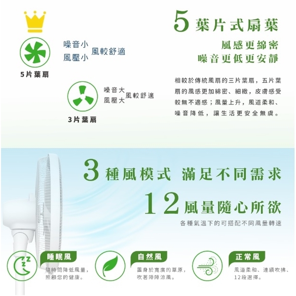 -7片式扇葉,風感柔順 -12段風速,隨心所欲
