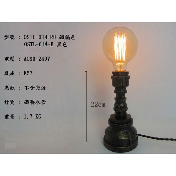 檯燈復古水管風產品 ,型號:OSTL-014-x - 奧立科技能源股份有限公司