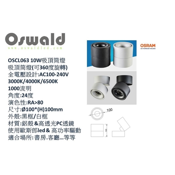 奧立科技能源股份有限公司 - 新款吸頂筒燈/也可軌道射燈 型號:OSCL063