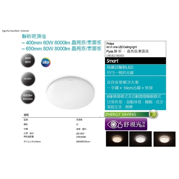 飛利浦新款靜昕80W可遙控調光調色吸頂燈/全電壓設計/舒適光技術