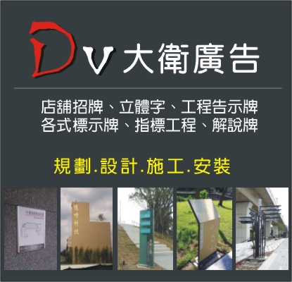 廣告招牌、店鋪招牌、立體銅字、圍籬廣告、工程告示牌、電腦割字、電腦噴畫、標示牌、指標工程、金屬立體字、解說牌、客製化門牌、彩繪工程、帆布廣告、店面招牌、不銹鋼字、鈦金字、壓克力製品、室內外壁面彩繪、建築物大型帆布廣告、梯廳燈箱、不銹鋼導覽牌、植物解說牌、指標牌、LED背光、壓克力立體字、殘障停車位標示牌、立式標示牌、壓克力解說牌、油漆彩繪、霓虹立體字、公佈欄、戶外立體字、端景牆、銅字、牆面廣告、金屬門牌、壓克力門牌、不鏽鋼解說牌、古銅立體字、不鏽鋼烤漆字、不鏽鋼導覽牌、廣告、導覽牌、壓克力、大衛、金屬招牌、班級牌、台中廣告、台中壓力克製品、台中標示牌、台中金屬招牌、台中工程告示牌、台中廣告招牌
