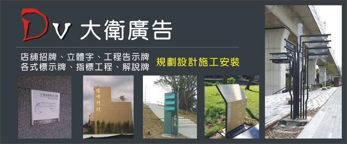 廣告招牌、店鋪招牌、立體銅字、圍籬廣告、工程告示牌、電腦割字、電腦噴畫、標示牌、指標工程、金屬立體字、解說牌、客製化門牌、彩繪工程、帆布廣告、店面招牌、不銹鋼字、鈦金字、壓克力製品、室內外壁面彩繪、建築物大型帆布廣告、梯廳燈箱、不銹鋼導覽牌、植物解說牌、指標牌、LED背光、壓克力立體字、殘障停車位標示牌、立式標示牌、壓克力解說牌、廣告招牌、油漆彩繪、霓虹立體字、公佈欄、戶外立體字、端景牆、銅字、牆面廣告、金屬門牌、壓克力門牌、不鏽鋼解說牌、古銅立體字、不鏽鋼烤漆字、不鏽鋼導覽牌、廣告、導覽牌、壓克力、大衛、金屬招牌、班級牌、台中廣告、台中壓力克製品、台中標示牌、台中金屬招牌、台中工程告示牌、台中廣告招牌