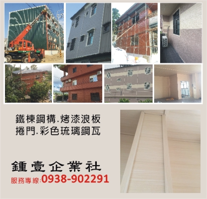 鐵棟鋼構、烤漆浪板、捲門、彩色琉璃鋼瓦、鍍鋅C型鋼、防火屋頂板、彩色裝潢鋼板、彩色磁鋼板、專營廠房鋼構、不銹鋼板工程施工、樓承鋼板、鐵皮屋、磁鋼板、電動捲門施工、採光罩、裝潢鋼板、防水、隔熱、廠房漏水整修、廠房整修、硫璃鋼瓦施工、不銹鋼門窗、欄杆、裝璜板、烤漆板、壁癌、抓漏、屋頂防水、浴室防水、中部烤漆浪板、中部廠房鋼構、中部鐵皮屋、電動捲門、中部漏水整修、中部廠房整修、中部屋頂防水、鋼構、彩色琉璃鋼瓦施工、鍾壹、台中鐵棟鋼構、台中烤漆浪板、台中琉璃鋼瓦、台中鍍鋅C型鋼、台中防火屋頂板、台中採光罩、台中防水隔熱、台中壁癌處理、台中抓漏