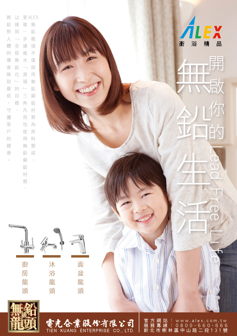 ALEX 無鉛龍頭與零件組均採用符合美國NSF-61原料含鉛量低於0.25% 規範之銅錠製作,