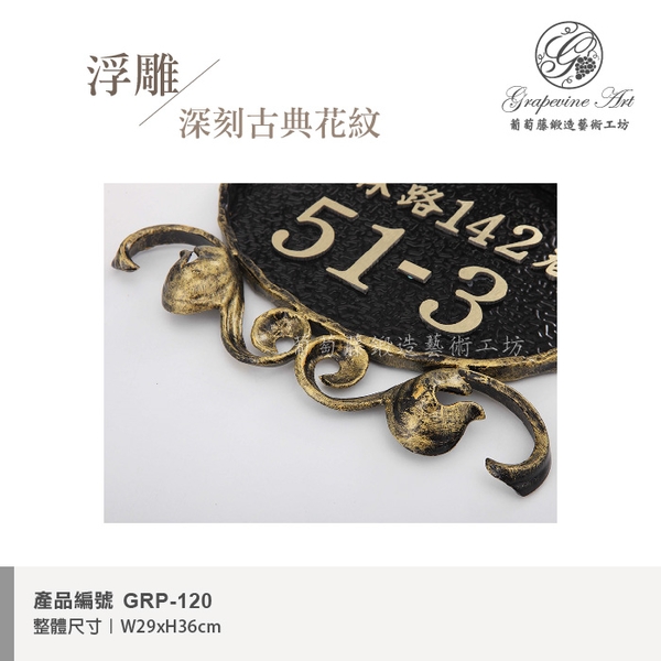 GRP-120 鍛造門牌 黑底立體字產品介紹 - 葡萄藤鍛造藝術有限公司