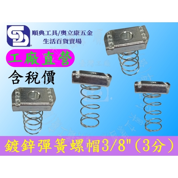 鍍鋅彈簧螺帽3/8(3分) 型鋼彈帽方形螺帽彈簧螺母台灣工廠 另有1/4(2分) 5/16(2分半)-圖3