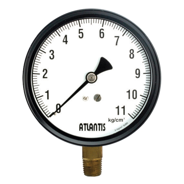 本款特殊4 吋零調型黑鐵殼壓力錶附微調螺絲,適用一般工程等需要現場校正指針的場合。