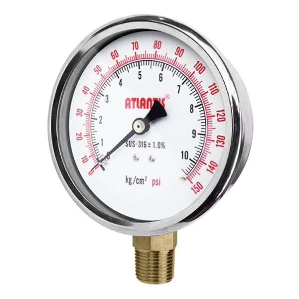 基本款半鋼壓力錶,具多種面徑與安裝型式選擇,適用與銅合金兼容的非腐蝕性介質量測。特別適用於液壓、壓縮機、一般機械工程、幫浦與水處理廠。