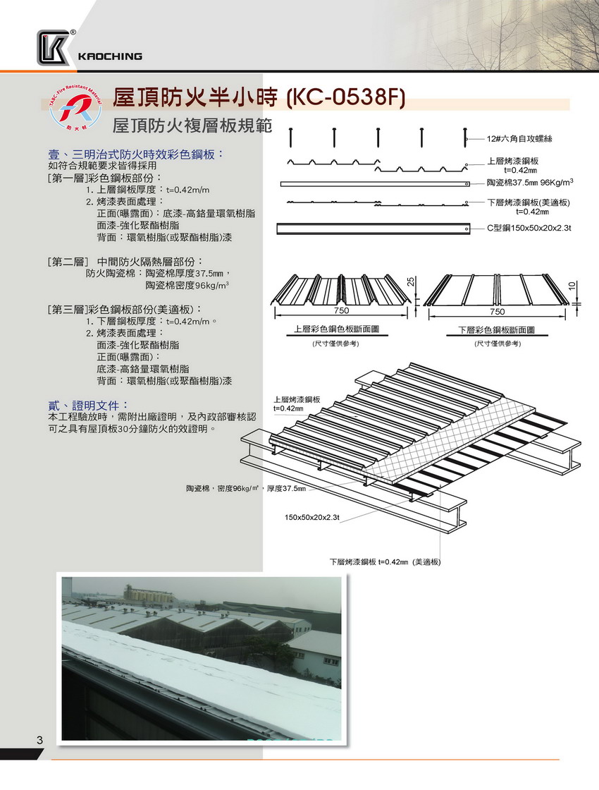 1.簡易型免包覆:KC-0525F屋頂防火半小時