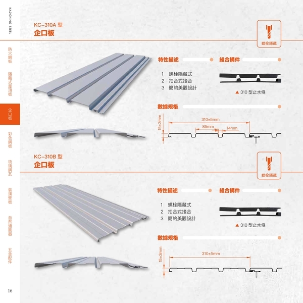 企口板產品 ,型號:KC-310B型 - 高勤鋼品