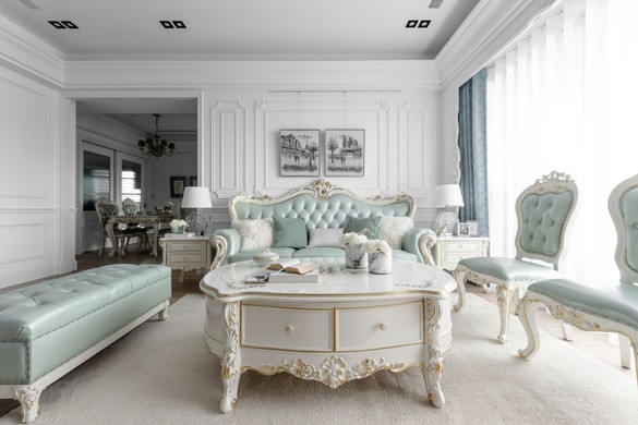 線板設計常常與新古典風格畫上等號,其多變的樣式,搭配浮雕設計,能夠在空間氛圍中塑造典雅氣息,同時在整個空間的點線面中,又能襯托出和諧、舒適的居家風采。