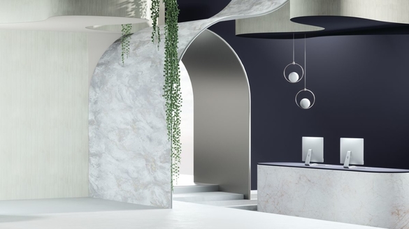 金屬石紋(Metallic Marbles)是富美家此次推出“流動“主題的產品之一,反映我們對於兼顧工作、休憩以及居家生活多變空間的集體需求。這些表面飾材強化了觸感的呈現,以滿足我們對於尋求遠離數位主宰一切現代社會的需求。流動的主題以如夢似幻的表面呈現,以柔軟、內斂的設計引導我們的感知,帶來兼具風格、舒適與平靜的氛圍。