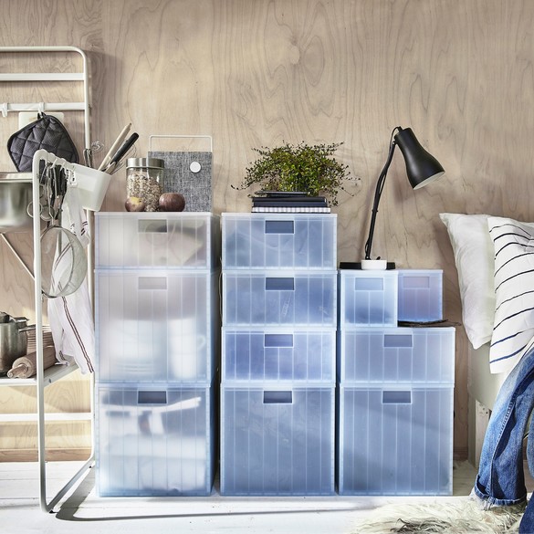 半透明的材質,能在剛好地能分辨內容物同時,把物品雜亂的樣貌藏起來,簡單就能讓房間井然有序。在換季的時候使用再合適不過了。