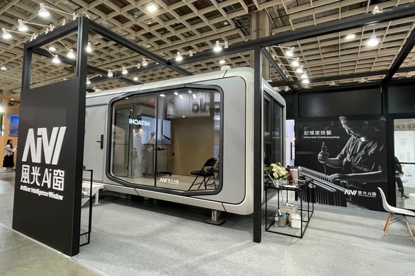 以鋁合金打造的移動屋,則實際結合風光Ai窗的產品,打造出隔絕展場熱鬧聲響、環境溫度的空間,以模擬居家使用風光Ai窗產品的情境,讓參觀者實際體驗感受。由於現代室內設計講究大量採光、絕佳視野,多使用大面窗、落地窗設計框景入室,如此一來,戶外熱能也會被傳導進屋內,不過,風光Ai窗結合窗框與中空複層節能玻璃一體開發,以輕鬆因應此狀況,有效隔絕室外冷熱傳導,就能夠在享受大片採光、視野的同時,也能兼顧室內的舒適性。