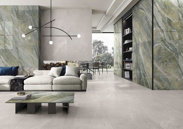 冠軍磁磚及馬可貝里磁磚推出的90x180瓷藝中板及安心居進口薄磚120X278公分系列產品,受到眾多設計師的青睞,產品融合了現代設計美學與卓越質感,適合用於商空及住宅使用,選用大尺寸磁磚可減少接縫,增強視覺連貫性,使空間看起來更加寬敞,顛覆了傳統舖貼多縫的觀念。冠軍建材相信,大尺寸磁磚能夠突破空間限制,為空間注入豪宅般的高端氣質,滿足消費者對高品質生活的追求。