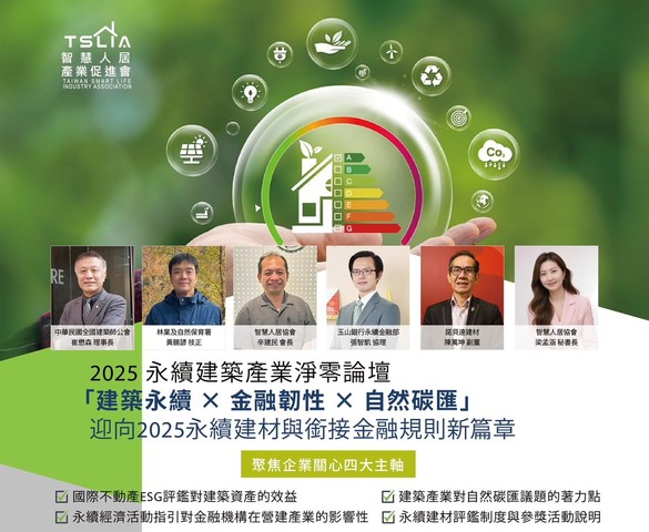 在全球邁向淨零碳排的時代背景下,建築產業正面臨前所未有的轉型挑戰與契機。由台灣智慧人居產業促進會主辦的【2025 永續建築產業淨零論壇「建築永續 × 金融韌性 × 自然碳匯」】,將於7月10日(三)將於台北市忠孝東路五段297號五樓彭園會館正式登場。此次論壇集結產官學研領袖,共同探討建築永續、金融韌性與自然碳匯三大主軸,描繪下一階段綠色建築與永續材料的市場行動藍圖。
