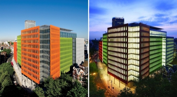2010年落成,造價4.5億英鎊(約169億台幣)的 Central Saint Giles 是一座多功能綜合大樓,其中包含零售、住宅、餐館、辦公室等空間,由曾獲普立茲克獎的義大利建築師 Renzo Piano 設計,是 Piano 在英國的第一件作品。大樓外觀以紅、黃、綠、橘等鮮明的色彩組成,與 Google 商標色彩雷同。Central Saint Giles 總面積約19,990坪,其中辦公空間占地約11,463坪;餐飲空間占地約702坪;約477坪為露台區域,此外還有109間住宅公寓。