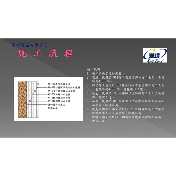 2.設計規劃:針對各項防水止漏及塗料工程、地坪工程、外牆拉皮及內牆裝飾塗料、斷熱塗料、球場工程、跑道工程等,提供設計規劃及施工建議。