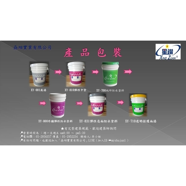 1.防水塗料 2.外牆拉皮及內牆裝飾塗料 3.斷熱塗料 4.地坪材 5.球場材6.跑道材7.其他(防水粉、補強網、彈性批土…等等)