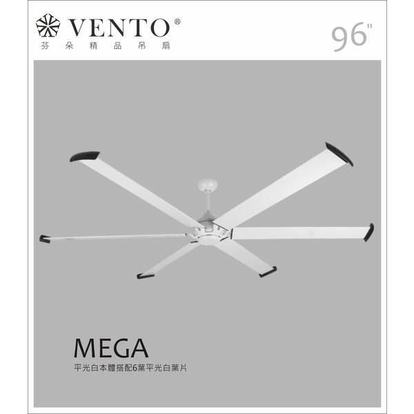MEGA系列,為傳統吊扇注入極大化的外型,讓產品使用範圍能更加深入,有別於市面上既有產品均是搭載變速馬達(非吊扇使用之馬達),馬力大,但耗能高且造價不斐!
